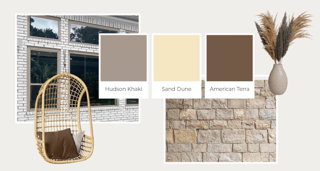 If you choose warm white for your finishes, trims or door colors, exterior sidings that embrace that same earthy softness will work best. We recommend: